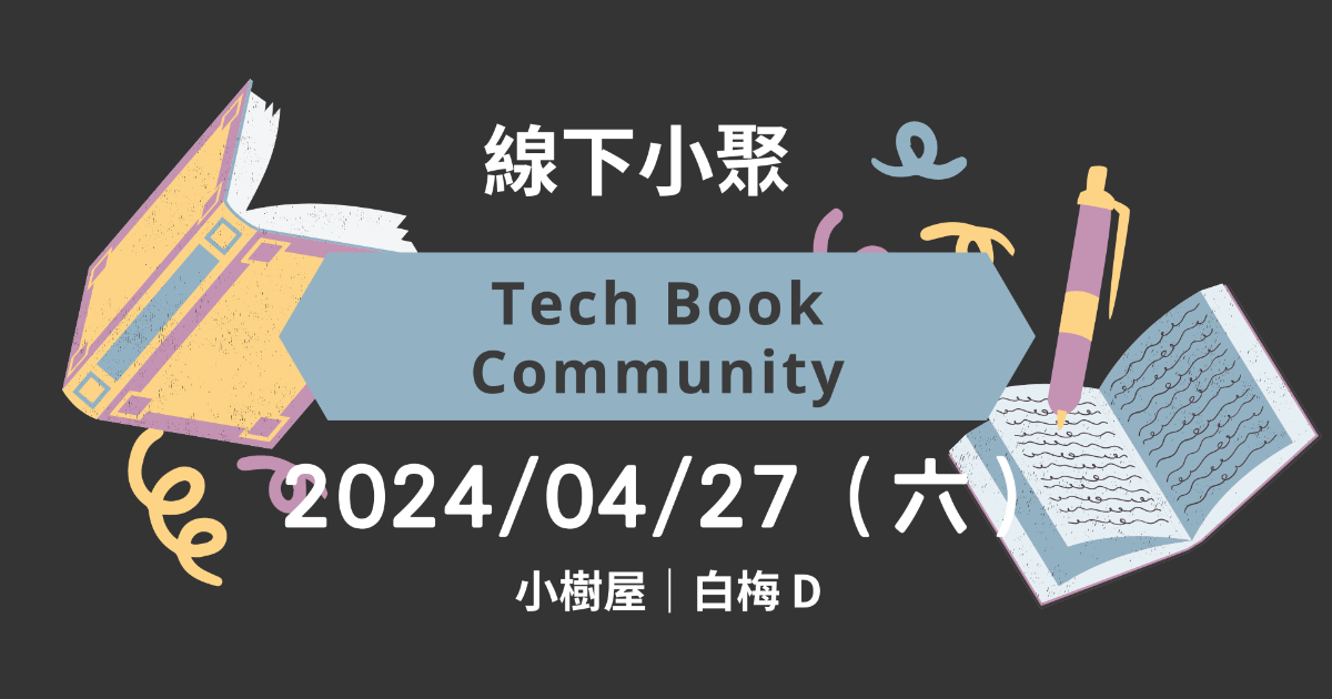 Tech Book Community 經營迎來第四個月,因此辦了個線下聚來讓大家到實體空間互相認識,本次聚會主軸是會是以交流聊天認識人為主。